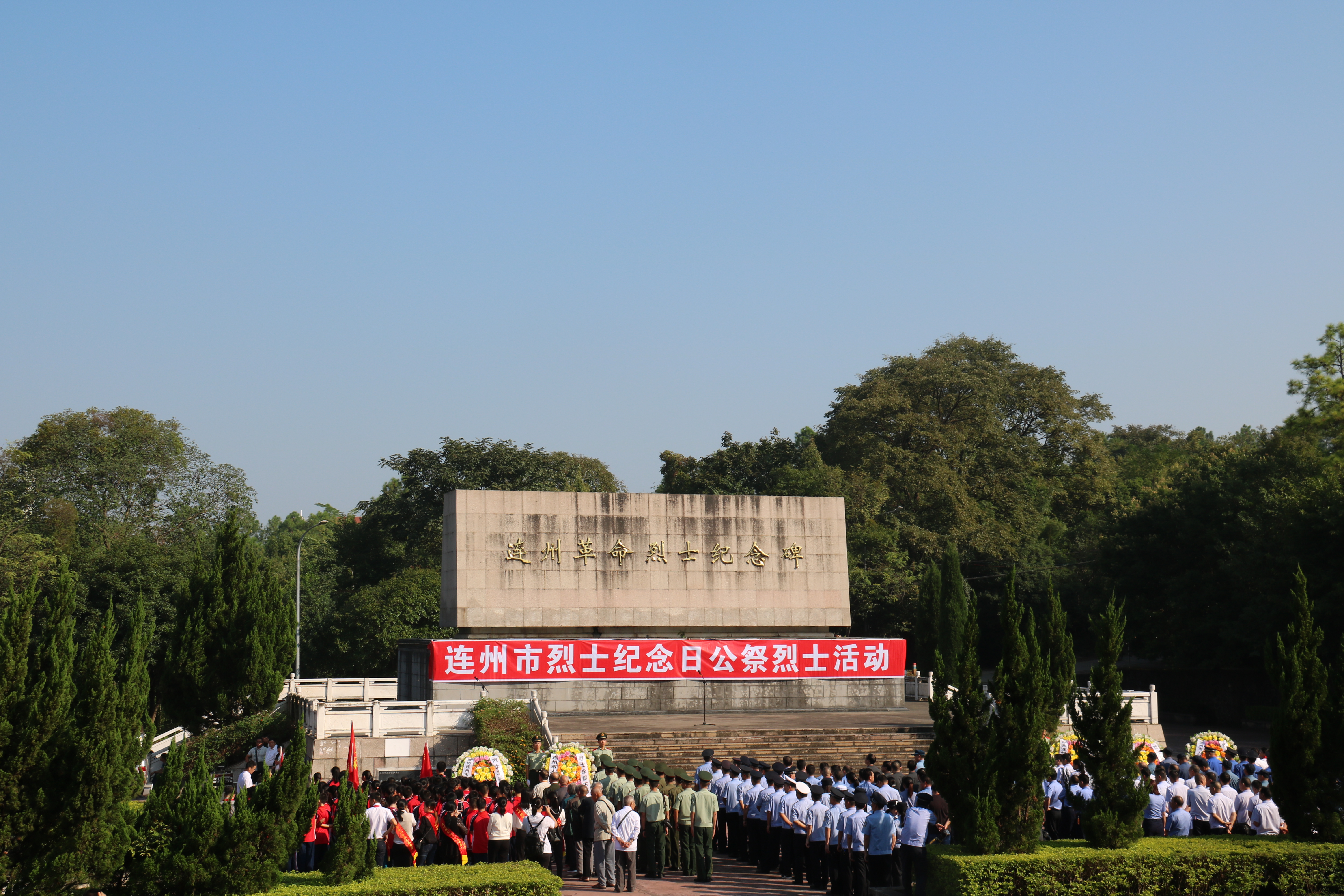 市四套班子在家領(lǐng)導、連州鎮(zhèn)、市直各單位、連江支隊連州老戰(zhàn)士聯(lián)誼會、復退軍人代表、軍烈屬代表及師生代表約450人齊聚烈士紀念碑參加了公祭活動。