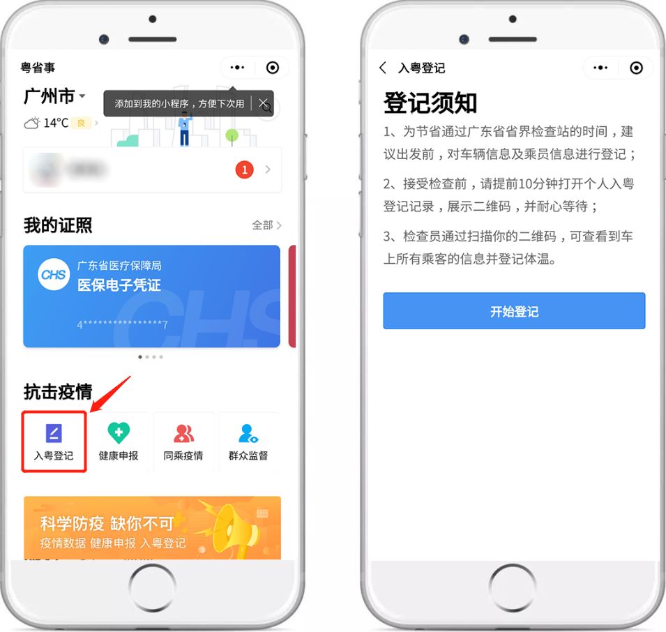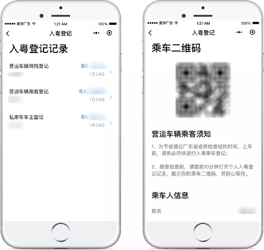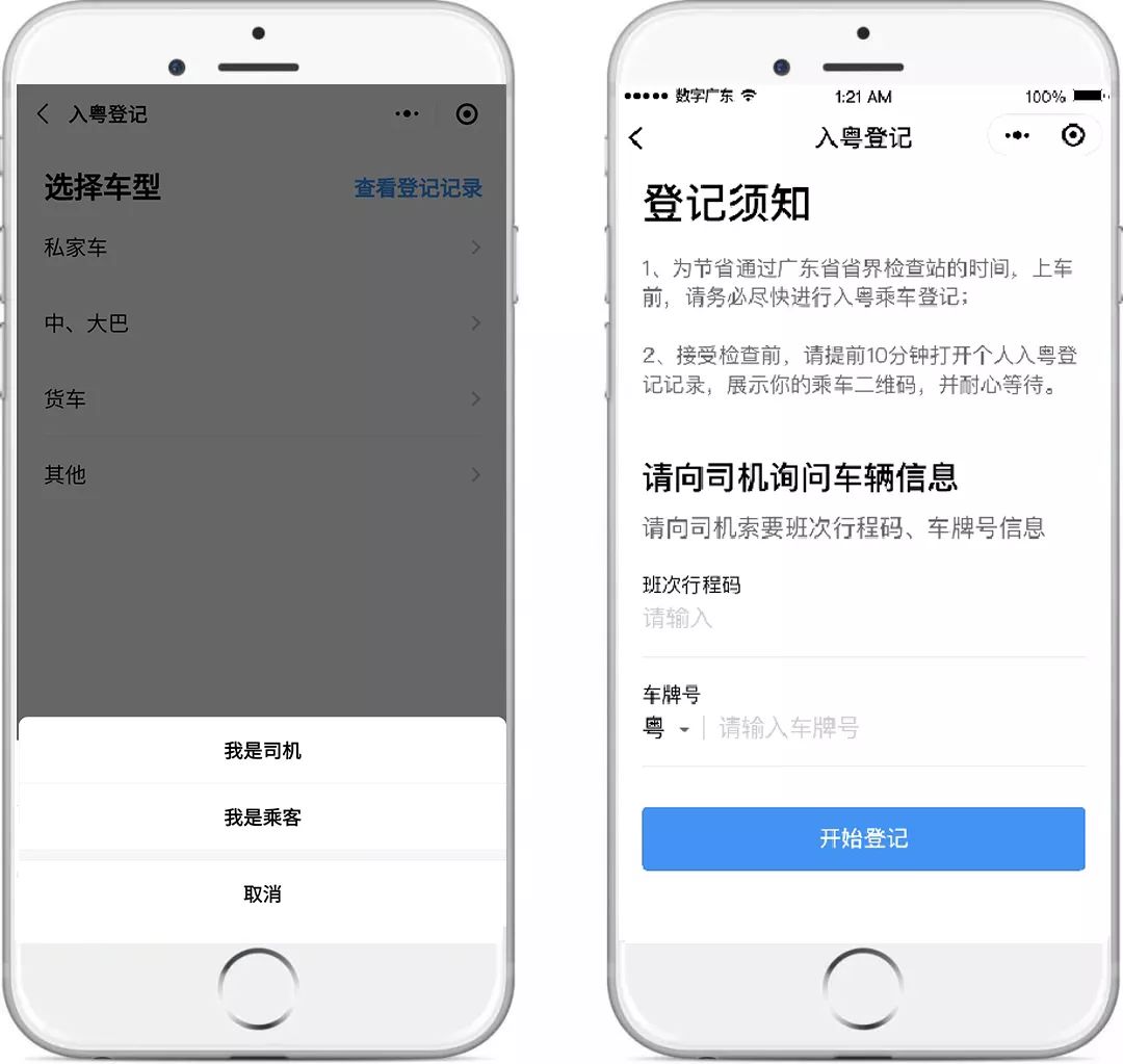 粵省事“疫情防控服務(wù)專區(qū)” 新增“入粵登記”服務(wù) 【“入粵登記”服務(wù)】 “入粵登記”服務(wù)主要面向外來入粵的司機、乘客群體,在進入廣東省時登記個人信息并記錄體溫。 所有進入廣東省內(nèi)的司機乘客都需要進行登記,其中: 1、私家車、貨車、其他車輛由司機填寫入粵登記,如有同乘人,則由司機一同登記。 2、中巴、大巴等營運車輛,司機與乘客分別填寫入粵登記,如有不便操作的乘客,可由同行人代填。 為節(jié)省通過廣東省省界檢查站的時間,建議出發(fā)前應(yīng)提前對車輛信息及乘員信息進行登記,并在進入防疫站檢測前提前打開二維碼界面,以節(jié)省核驗檢查時間。 點擊上方圖片 保存或轉(zhuǎn)發(fā)“入粵登記”流程 給身邊的人 一起提前登記,快速通過防疫站 下面一起來看看 “入粵登記”的詳細操作介紹 和常見問題解答吧 “入粵登記”服務(wù)入口 (1)微信搜索進入“粵省事”小程序,首頁“抗擊疫情”版塊,點擊“入粵登記”服務(wù)。 (2)微信搜索進入“粵省事”小程序,下滑至“專區(qū)”版塊點擊進入“疫情防控服務(wù)專區(qū)”,或直接點擊下方圖片進入專區(qū)。 進入“疫情防控服務(wù)專區(qū)”后,下滑點擊“入粵登記”,司機或乘客可根據(jù)實際情況選擇類型進入登記。后續(xù)可從該界面右上角“查看登記記錄”進入找到相關(guān)登記記錄。 私家車/貨車/其他車輛 駕駛?cè)嗽诔霭l(fā)前,點擊進入“入粵登記”服務(wù),選擇相應(yīng)的車輛類型,閱讀服務(wù)須知后填寫駕駛?cè)诵畔ⅲㄗ⒁鉁蚀_填寫號牌種類),如獨自駕駛,確認無誤后可直接提交。 如車上有同行乘客,需一并填報同乘人員信息,點擊“錄入同乘人信息”,可添加多位乘客信息。添加完畢后確認信息并提交即可。 到達檢查站,駕駛員在“粵省事”的“入粵登記記錄”找到對應(yīng)記錄,出示對應(yīng)乘車二維碼,檢查員掃碼核驗,待檢查員測量全車人員體溫、提交信息后通過。 中大巴司機 駕駛員出發(fā)前,進入“入粵登記”服務(wù),點擊“中、大巴”選擇“司機”,并填寫登記信息(注意準確填寫號牌種類),確認無誤后可提交。 到達檢查站,駕駛員進入“入粵登記”服務(wù),點擊右上角“查看記錄”找到對應(yīng)記錄,點擊相應(yīng)車牌,出示對應(yīng)乘車二維碼給檢查員核驗,待檢查員測量體溫、提交信息后通過。 如有乘客詢問班次行程碼也可從此進入獲取。 中、大巴車乘客 乘客在出發(fā)前向司機索取班次行程碼及車牌號,進入“入粵登記”服務(wù),點擊“中、大巴登記”選擇“乘客”,填入班次行程碼及車牌號。 填寫乘客登記信息,確認無誤后可提交。 到達檢查站后,乘客在“入粵登記”服務(wù),點擊右上角“查看記錄”找到對應(yīng)記錄,點擊當次乘坐的對應(yīng)車牌,出示對應(yīng)乘車二維碼給檢查員核驗,待檢查員測量體溫、提交信息后通過。 常見問題答疑 Q:是否支持代辦? 私家車/貨車/其他類型車輛需由司機統(tǒng)一代全車人員辦理;中、大巴車乘客如有多人同行,可由同行人代為辦理。 Q:支持哪些人士辦理,有無戶籍、城市等限制? 支持持有有效二代居民身份證的用戶實名認證后辦理,無城市、戶籍限制,暫不支持港澳、臺灣人士及外籍人士辦理,因此如遇嬰幼兒乘客、港澳人士、臺灣人士、外籍人士等人群,敬請咨詢檢查員其他處理方法。 Q:本人如上報多次記錄以哪條為準? 以用戶出示的二維碼對應(yīng)的記錄為準。 Q:如提交失敗如何處理? 請確認是否網(wǎng)絡(luò)導致,建議切換網(wǎng)絡(luò)或前往良好的網(wǎng)絡(luò)環(huán)境再作嘗試。 Q:在粵省事使用微信支付密碼登錄安全嗎? “粵省事”為廣東省人民政府主辦的移動政務(wù)服務(wù)平臺,保障您的信息安全,本次使用微信支付密碼登錄,僅為了讓您快速實名認證辦理“入粵登記”服務(wù),請放心使用。 Q:從省外入粵,先到廣東A地,再到廣東B地,怎么填? 填寫A地,即初始進入廣東省界所在地市為準。 Q:本來就是粵牌車,從省外入粵是否還要登記? 為加強疫情防控,凡進入廣東省界車輛請按照有關(guān)政策辦理入粵登記。 Q:提前幾天登記可以嗎?現(xiàn)在登記什么時候入粵都可以嗎? 如您已確認行程,為保證您順暢通行,建議您可提前辦理入粵登記。 Q:不登記可以入廣東嗎?? 為加強疫情防控,建議您辦理入粵登記,如因特殊原因無法辦理,請根據(jù)現(xiàn)場聯(lián)合防疫站的工作人員指引通行。 Q:駕駛者不是車主,由駕駛者登記可以嗎? 入粵登記將核查入粵人員信息,如非車主本人入粵,則需由當前駕駛員辦理登記。 春節(jié)后返程高峰即將到來 為打贏疫情防控阻擊戰(zhàn) 保障廣大人民平安暢順出行 請出發(fā)前或入粵前完成入粵登記 以便快速通過各大聯(lián)合檢疫站 馬上點擊圖片進入 “疫情防控服務(wù)專區(qū)” 主管&策劃單位:廣東省政務(wù)服務(wù)數(shù)據(jù)管理局 出品:數(shù)字廣東網(wǎng)絡(luò)建設(shè)有限公司 編輯:許嘉蕙