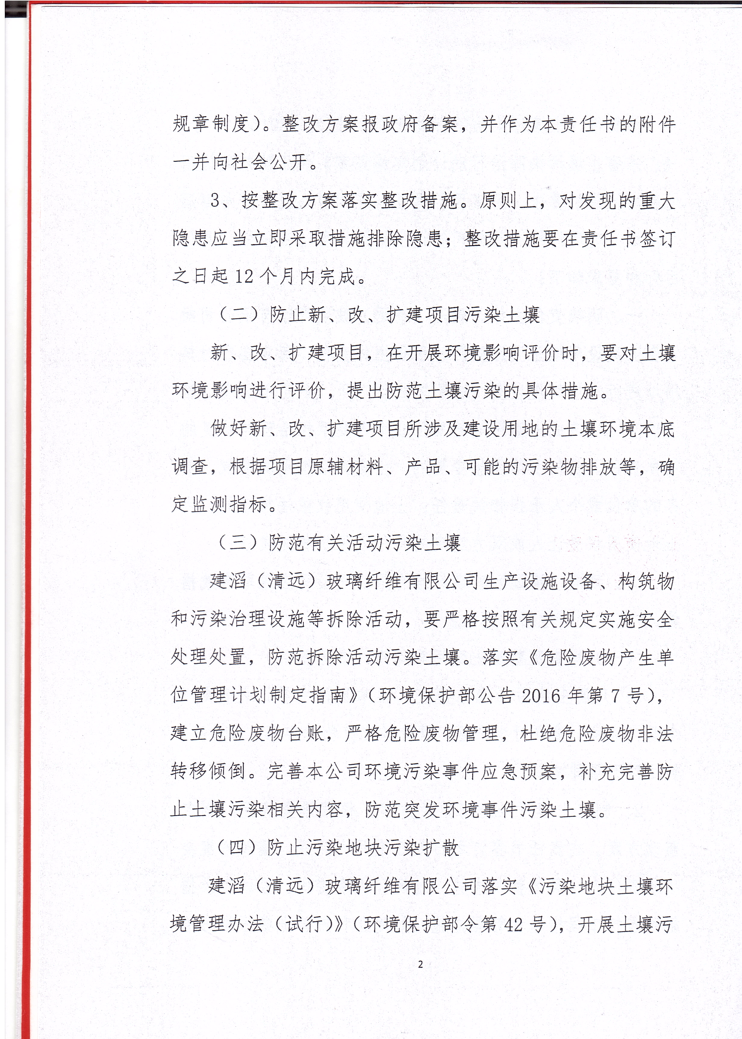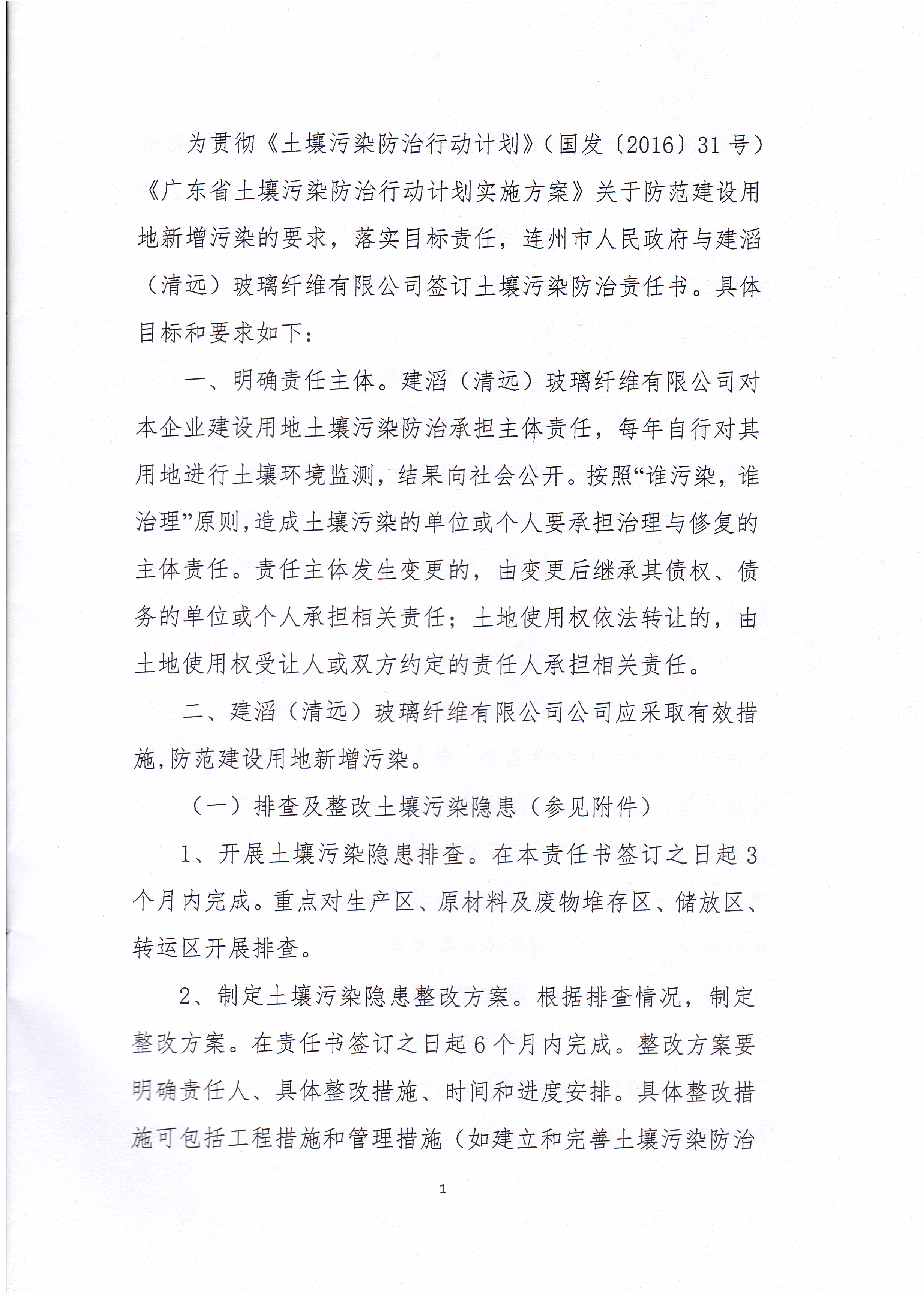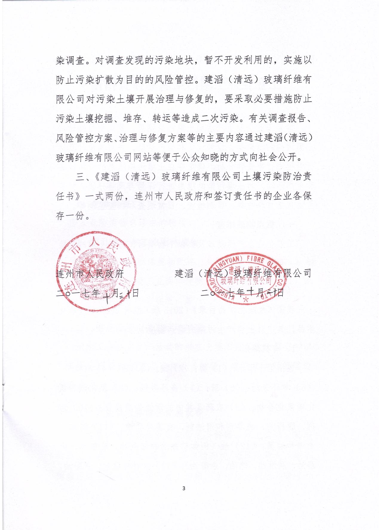 建滔(清遠(yuǎn))玻璃纖維有限公司土壤污染防治責(zé)任書