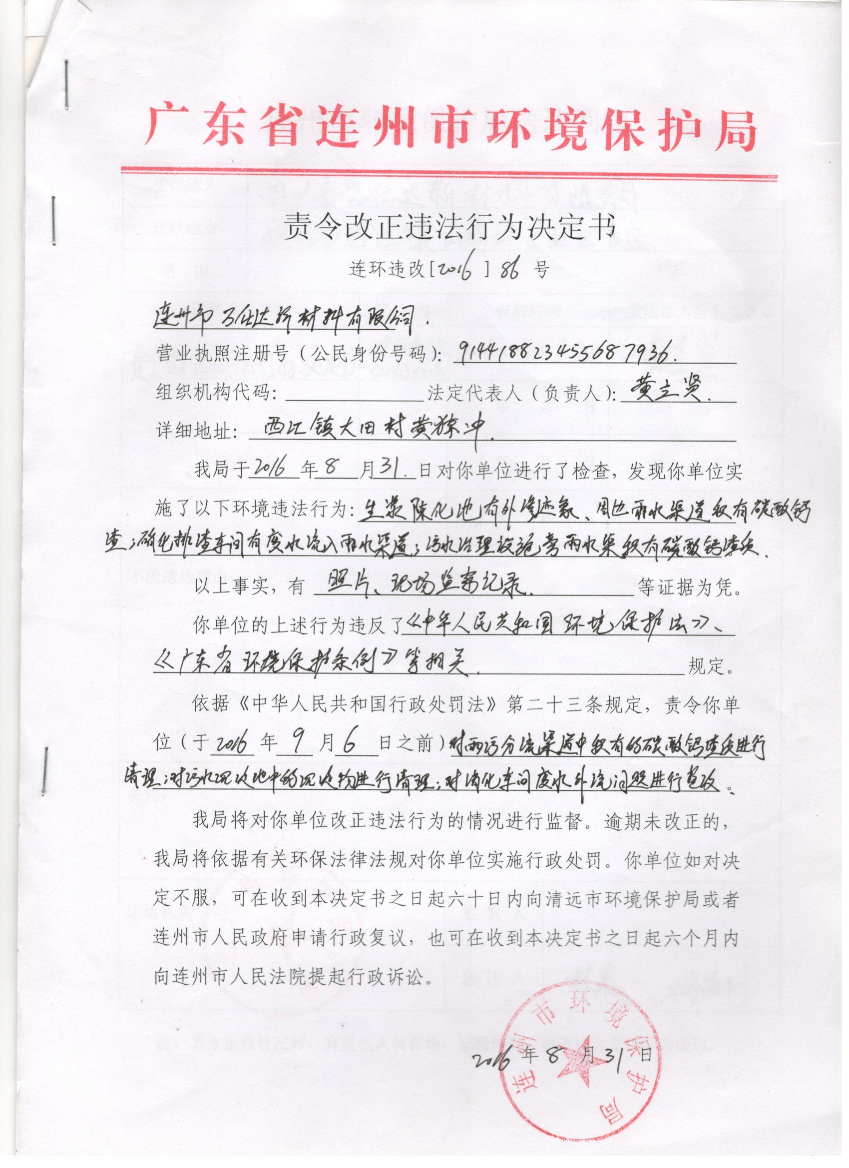 連環(huán)違改字[2016]86號(hào)