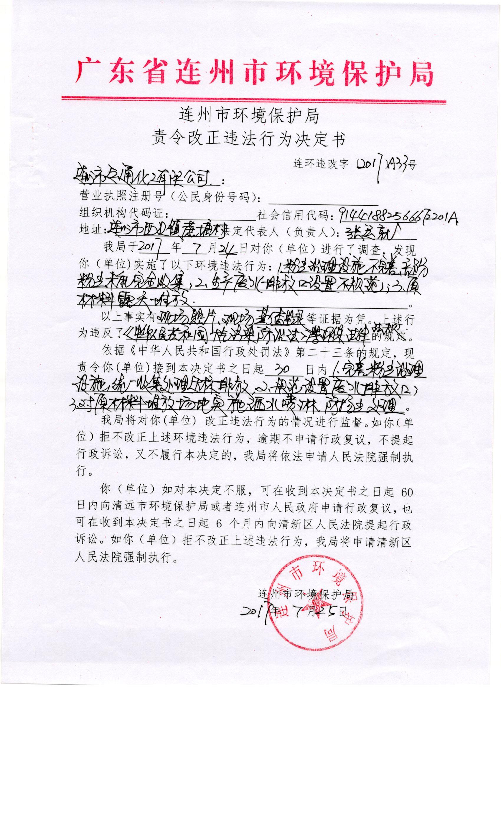 連環(huán)違改字[2017]A33號(hào)