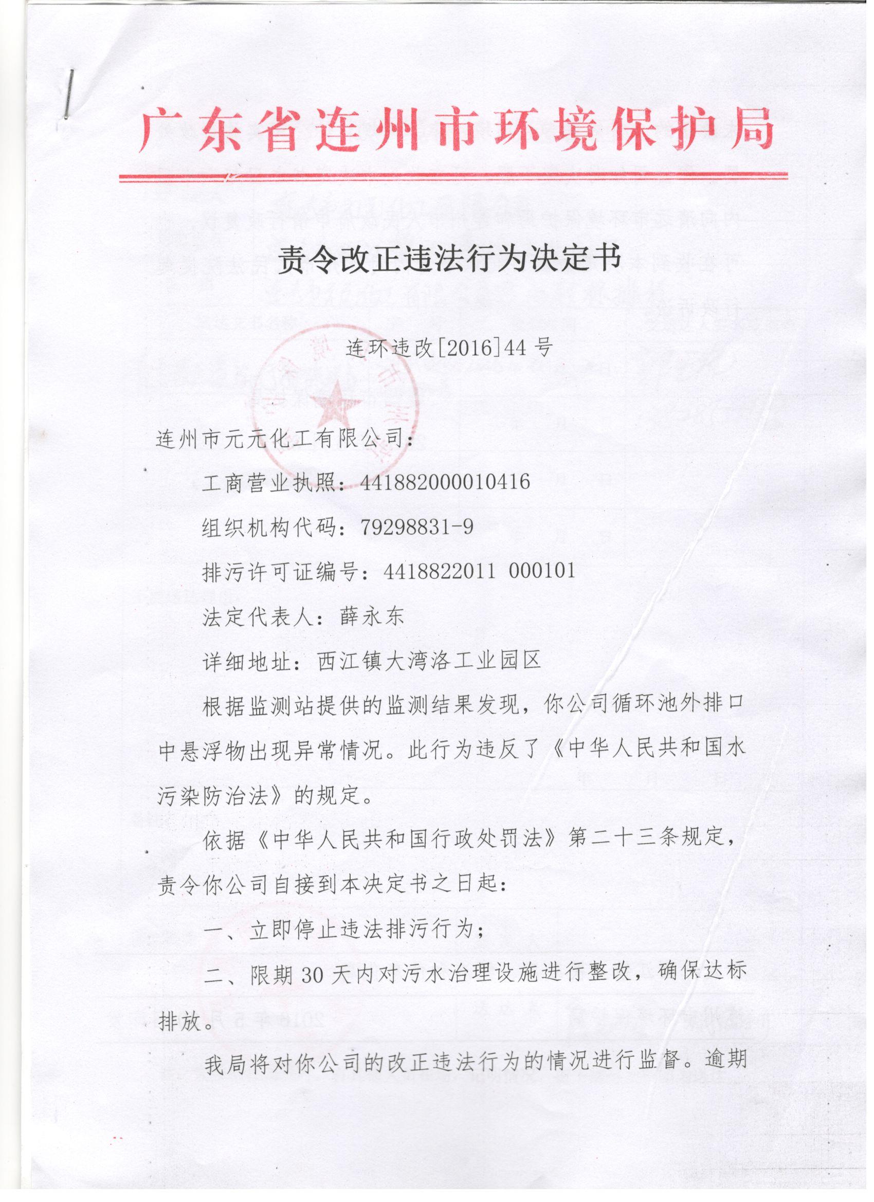 連環(huán)違改字[2016]44號(hào)