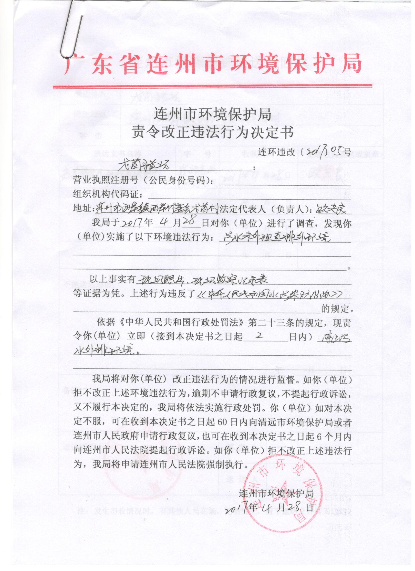 連環(huán)違改字[2017]05號(hào)