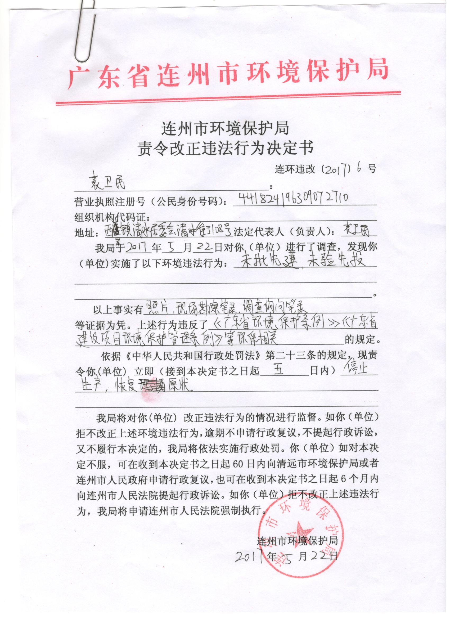 連環(huán)違改字[2017]06號