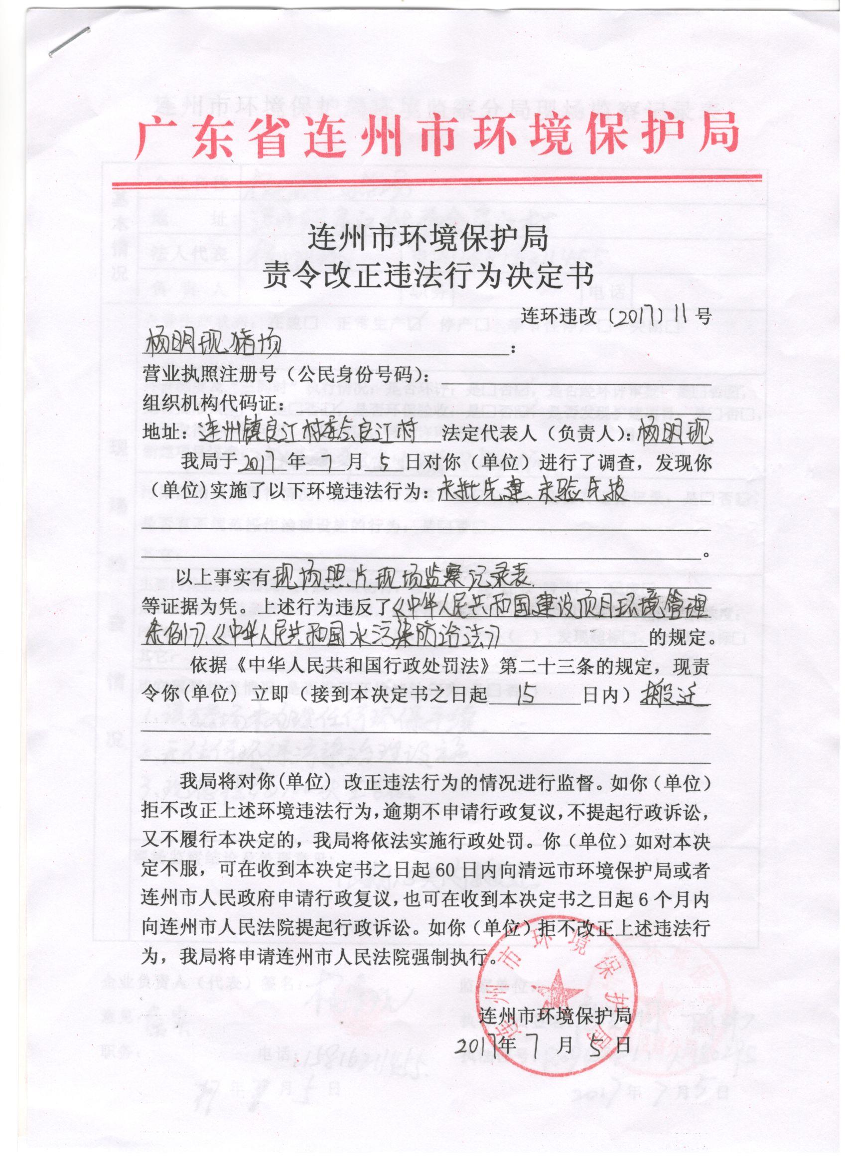 連環(huán)違改字[2017]11號(hào)