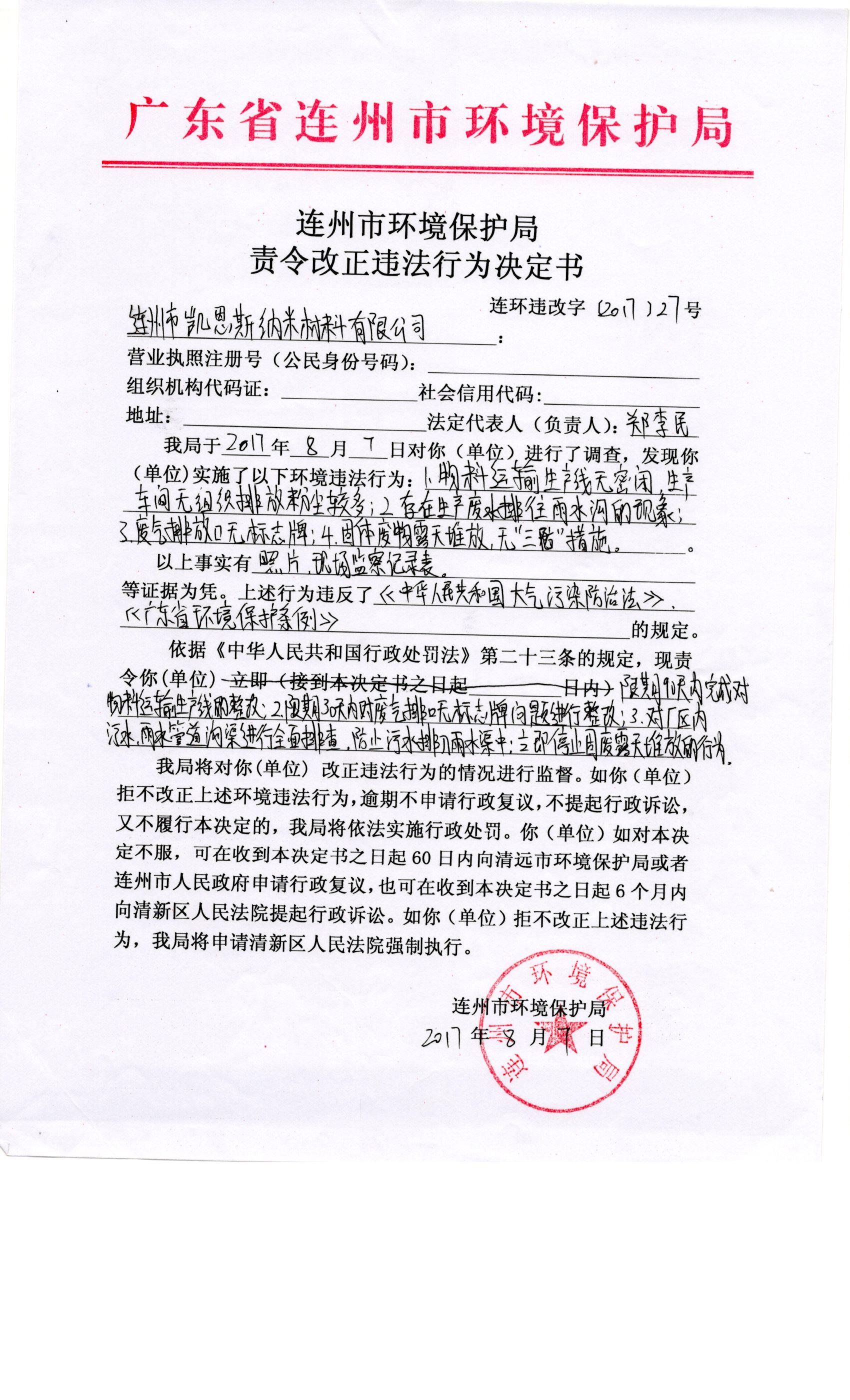 連環(huán)違改字[2017]27號(hào)