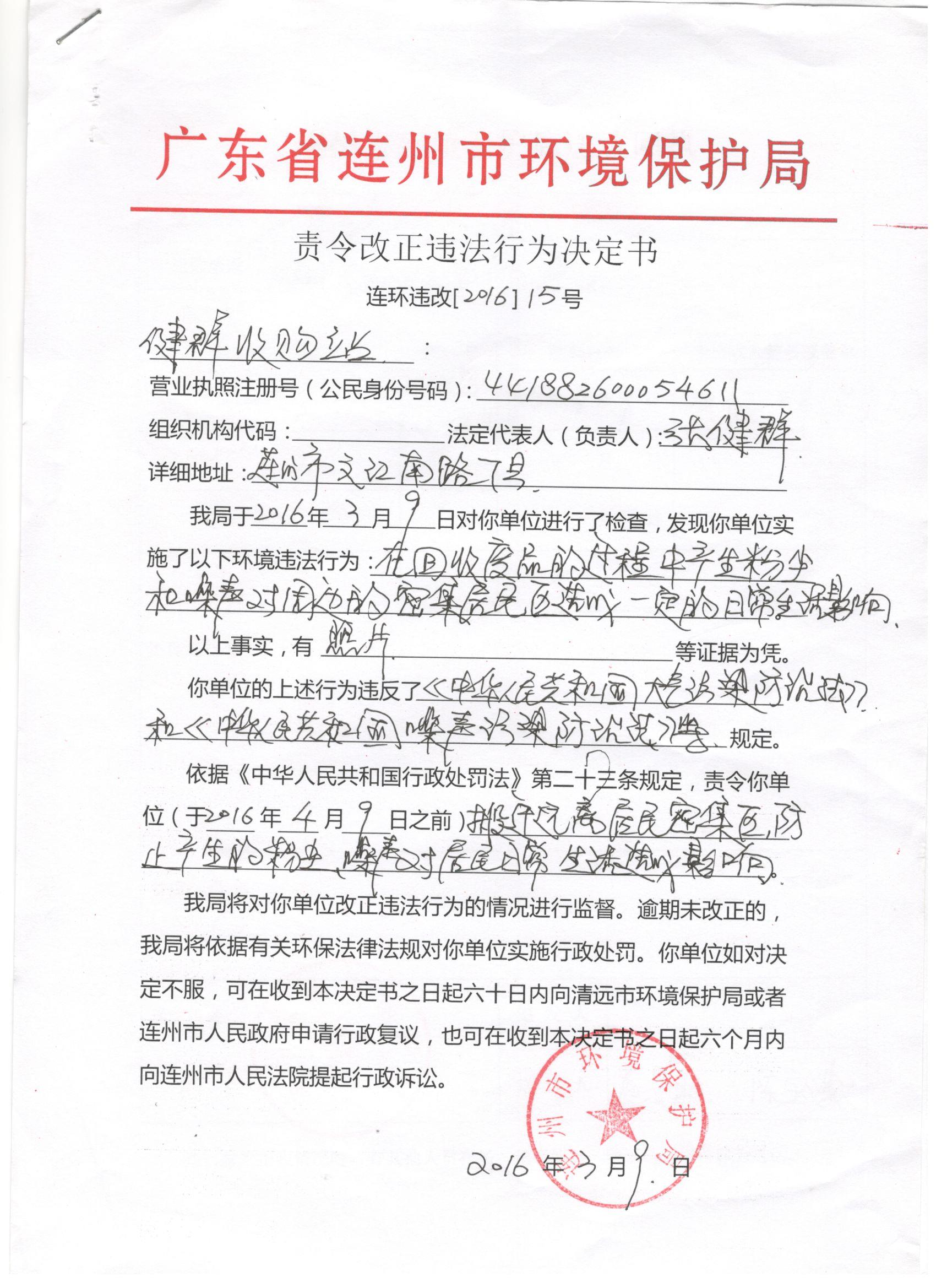 連環(huán)違改【2016】15號