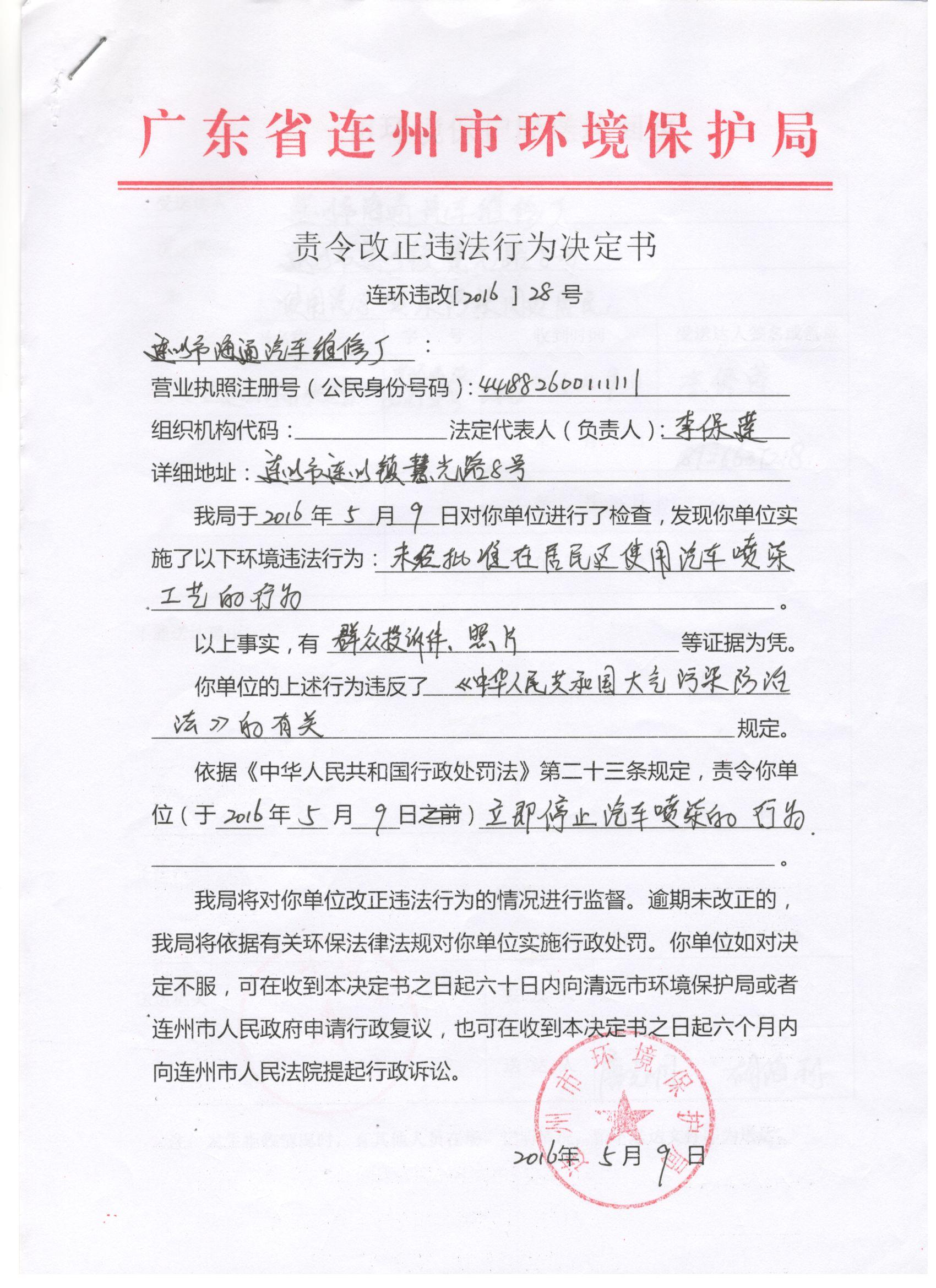 連環(huán)違改【2016】28號(hào)