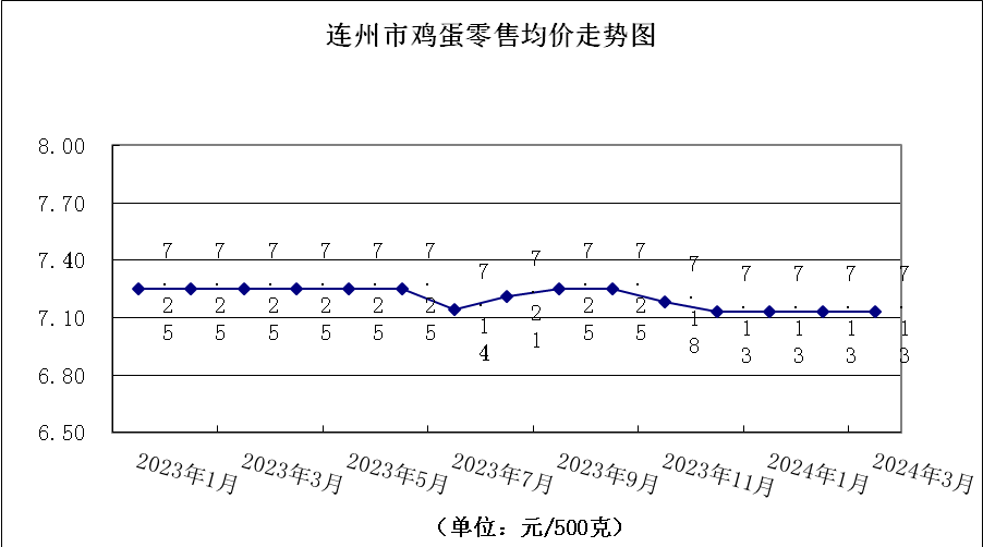 蛋類零售均價為7.90元/500克,環(huán)比降0.50%。其中,雞蛋平均零售價格為7.13元/500克,環(huán)比不變。鴨蛋平均零售價格為8.68元/500克,環(huán)比降0.80%。