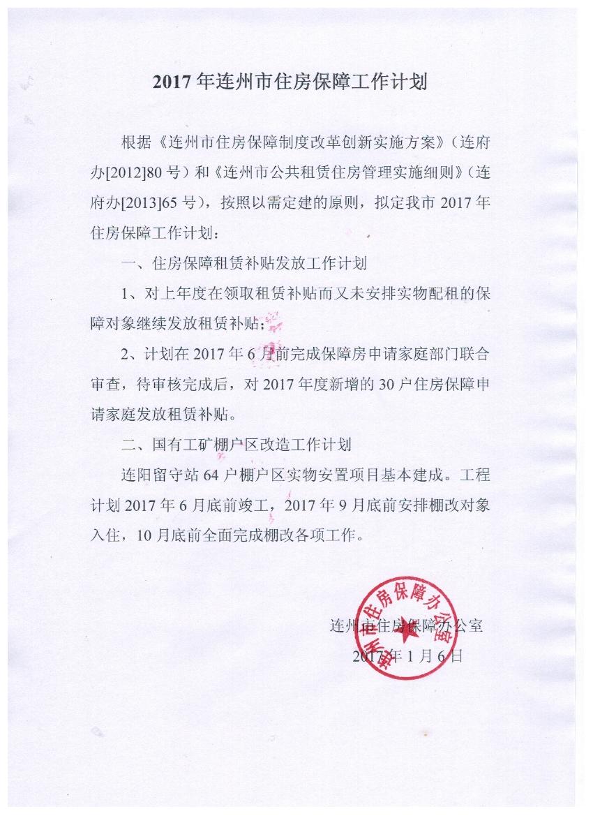 2017年連州市住房保障工作計(jì)劃