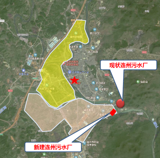 擬建地點:連州市人民醫(yī)院、連發(fā)紙廠地塊附近,與現(xiàn)狀污水廠隔江相望,占地2.5公頃,約37.5畝。