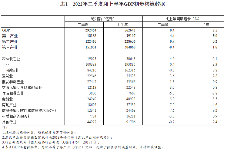 (轉(zhuǎn)載)2022年二季度和上半年國(guó)內(nèi)生產(chǎn)總值初步核算結(jié)果