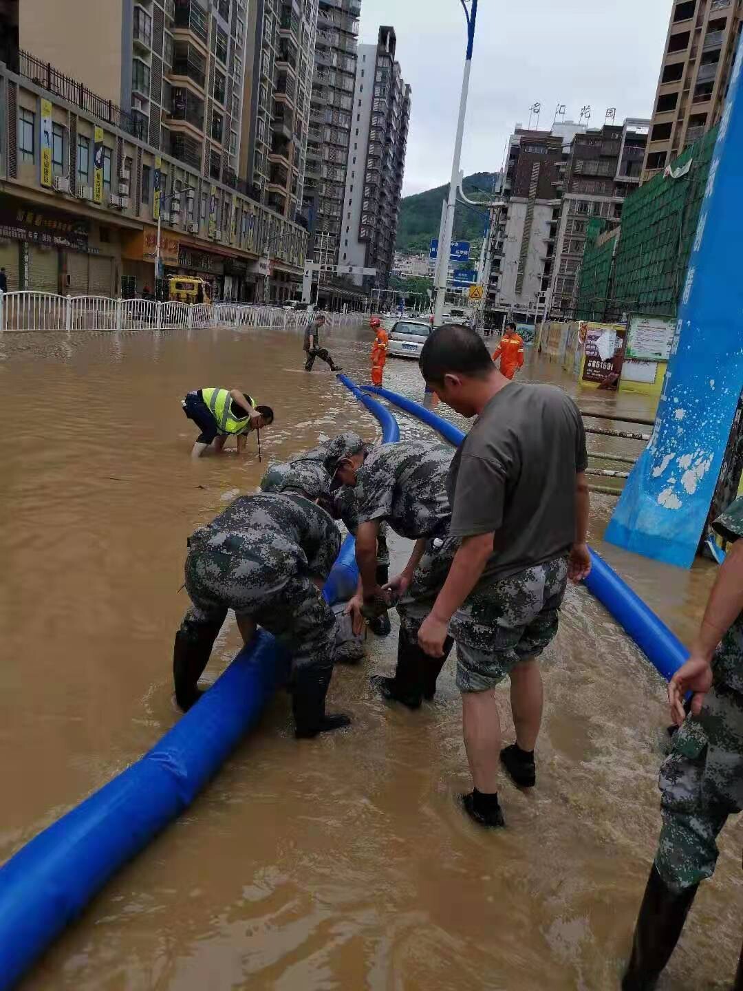救援隊(duì)在現(xiàn)場排澇