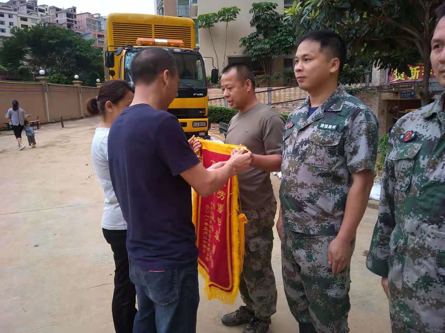 業(yè)主向市綜合應(yīng)急救援隊(duì)贈(zèng)送錦旗