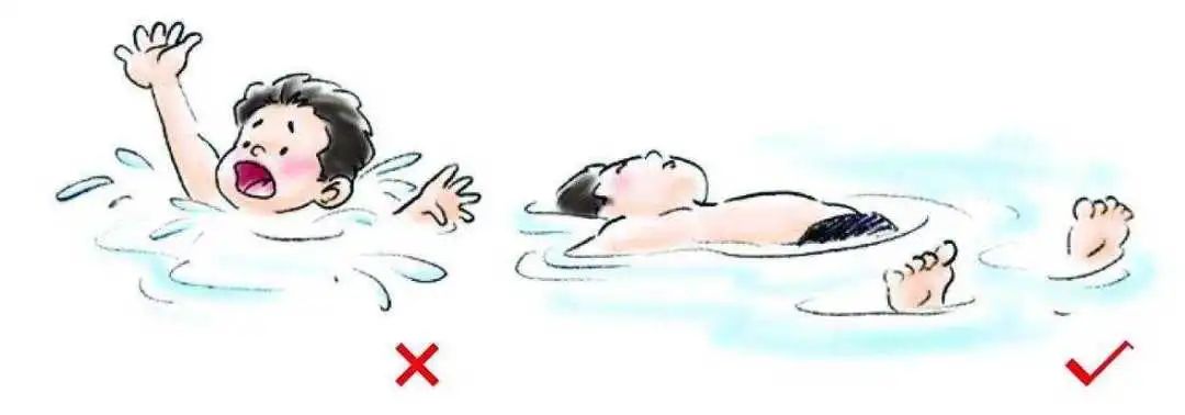 放松全身,讓身體飄浮在水面上,將頭部浮出水面,用腳踢水,防止體力喪失,等待救援;