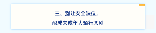 保障未成年人出行安全,需要多方共同努力,共同筑牢交通安全防線!尚未達(dá)到法定年齡的學(xué)生們,也請(qǐng)勿為了一時(shí)方便、刺激騎行電動(dòng)自行車(chē)。