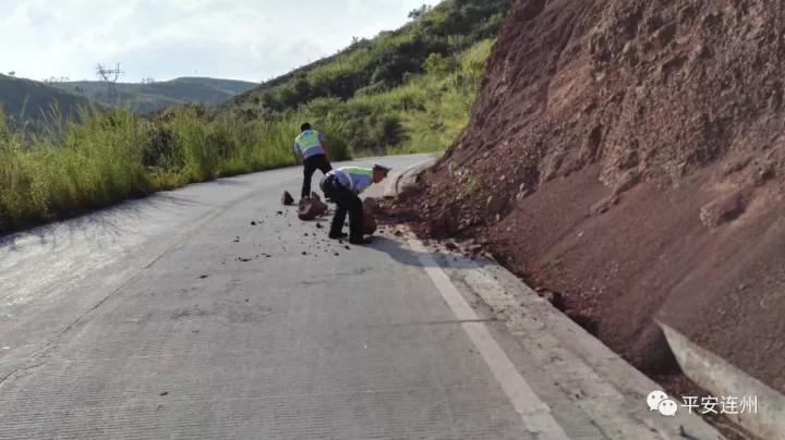 2星子中隊(duì)加強(qiáng)假日期間的路面巡邏管控,執(zhí)勤交警發(fā)現(xiàn)公路邊坡塌方落石,立即徒手清理公路上的落石,及時(shí)消除事故隱患