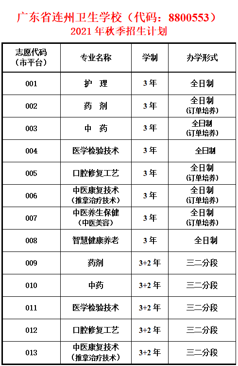 學校的全稱為“廣東省連州衛(wèi)生學校”,招生代碼為8800553。