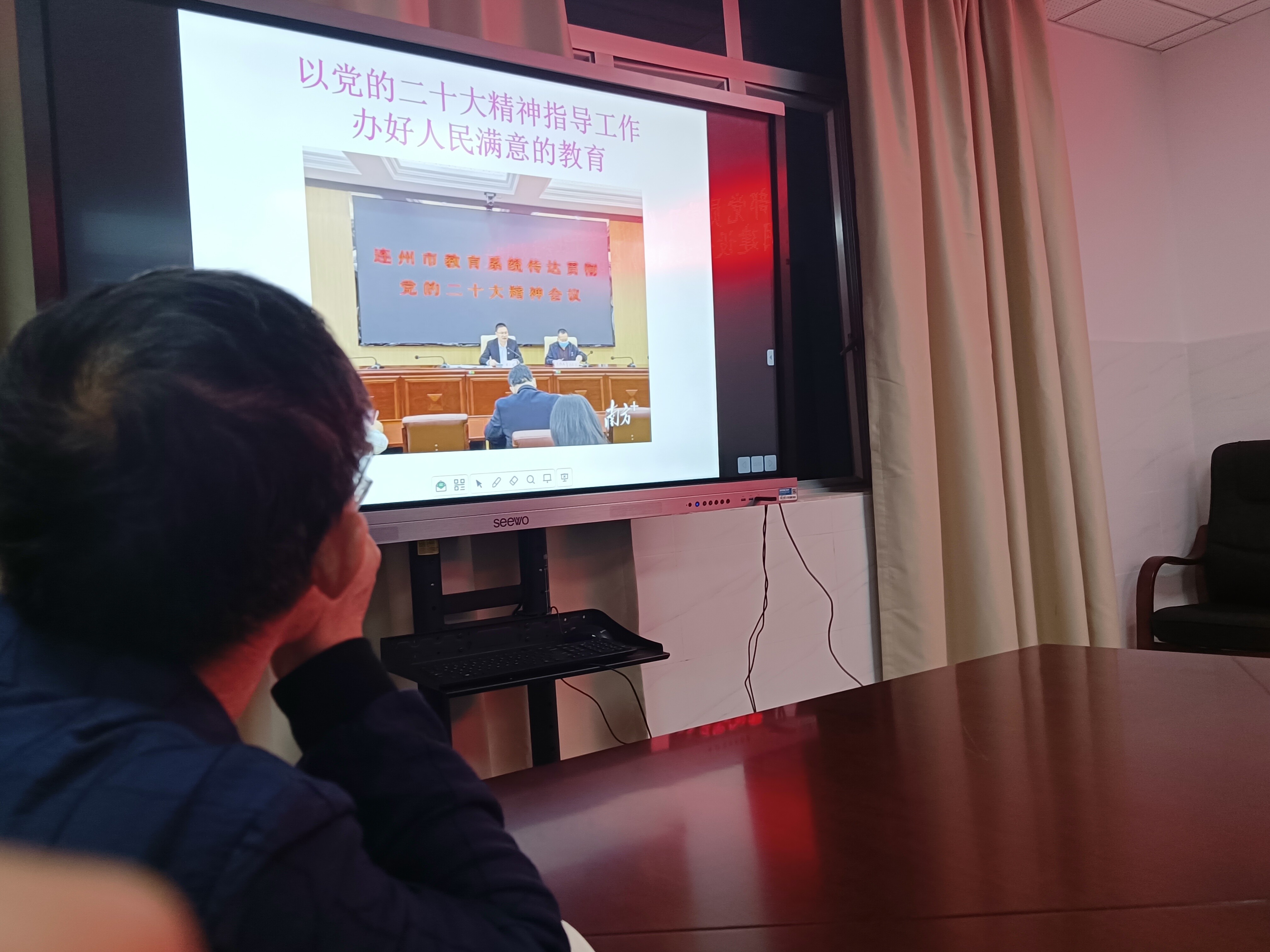 11月15日,連州市職業(yè)技術(shù)學(xué)校文科黨支部在辦公樓506會(huì)議室召開(kāi)全體黨員會(huì)議,會(huì)議主題為宣講黨的二十大精神。由支部書記張勤同志主持會(huì)議。