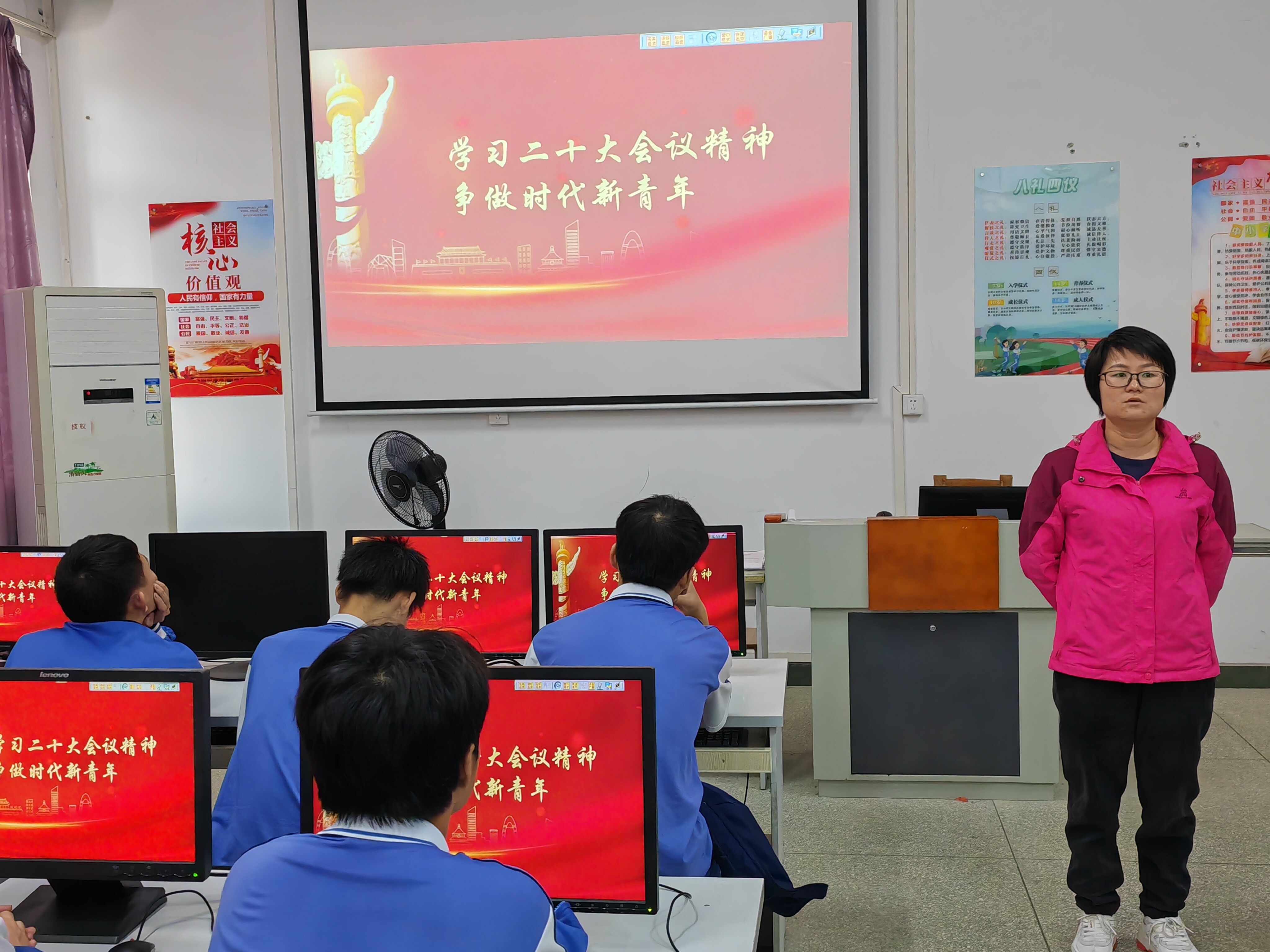 三、連州市職業(yè)技術(shù)學(xué)校繼續(xù)以黨建帶團(tuán)建,組織學(xué)生學(xué)習(xí)黨的二十大精神,做到“少年強(qiáng)則國(guó)強(qiáng)”。為進(jìn)一步加強(qiáng)學(xué)生愛(ài)國(guó)主義教育,厚植共青團(tuán)愛(ài)黨愛(ài)國(guó)愛(ài)社會(huì)主義情感,11月28日,全校班主任利用班會(huì)課開(kāi)展“學(xué)習(xí)黨的二十大精神,爭(zhēng)做時(shí)代新青年”主題班會(huì)。各班思政課教師利用課前10分鐘宣傳黨的二十大精神,鼓勵(lì)全體同學(xué)立志銘心,砥礪品格,樹(shù)立理想,攜手拼搏,努力成長(zhǎng)為堪當(dāng)民族復(fù)興重任的時(shí)代新人!