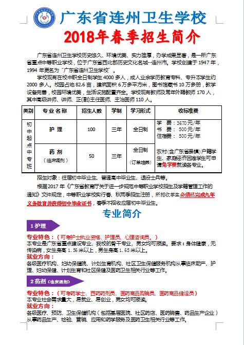 廣東省連州衛(wèi)生學校2018年春季招生簡介