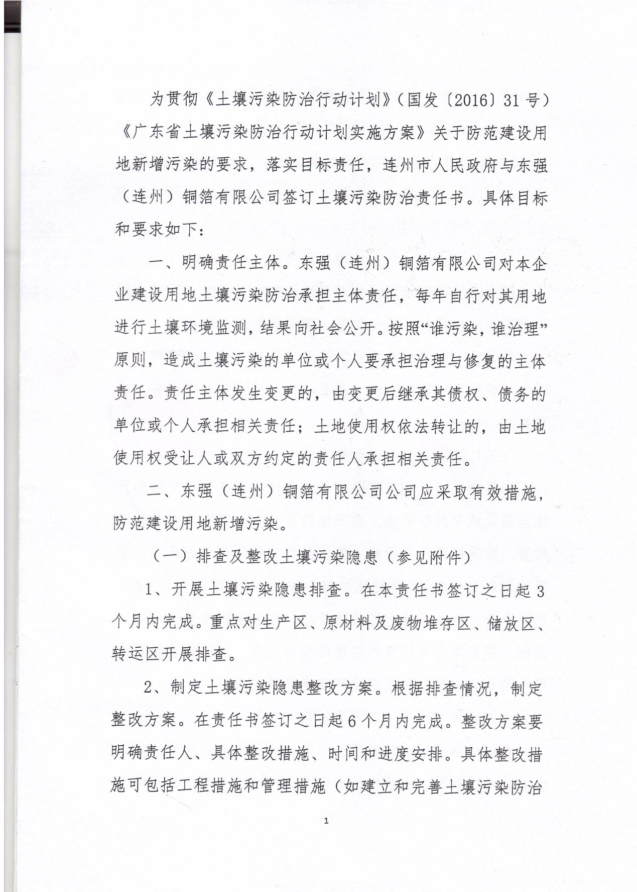 東強(qiáng)(連州)銅箔有限公司土壤污染防治責(zé)任書