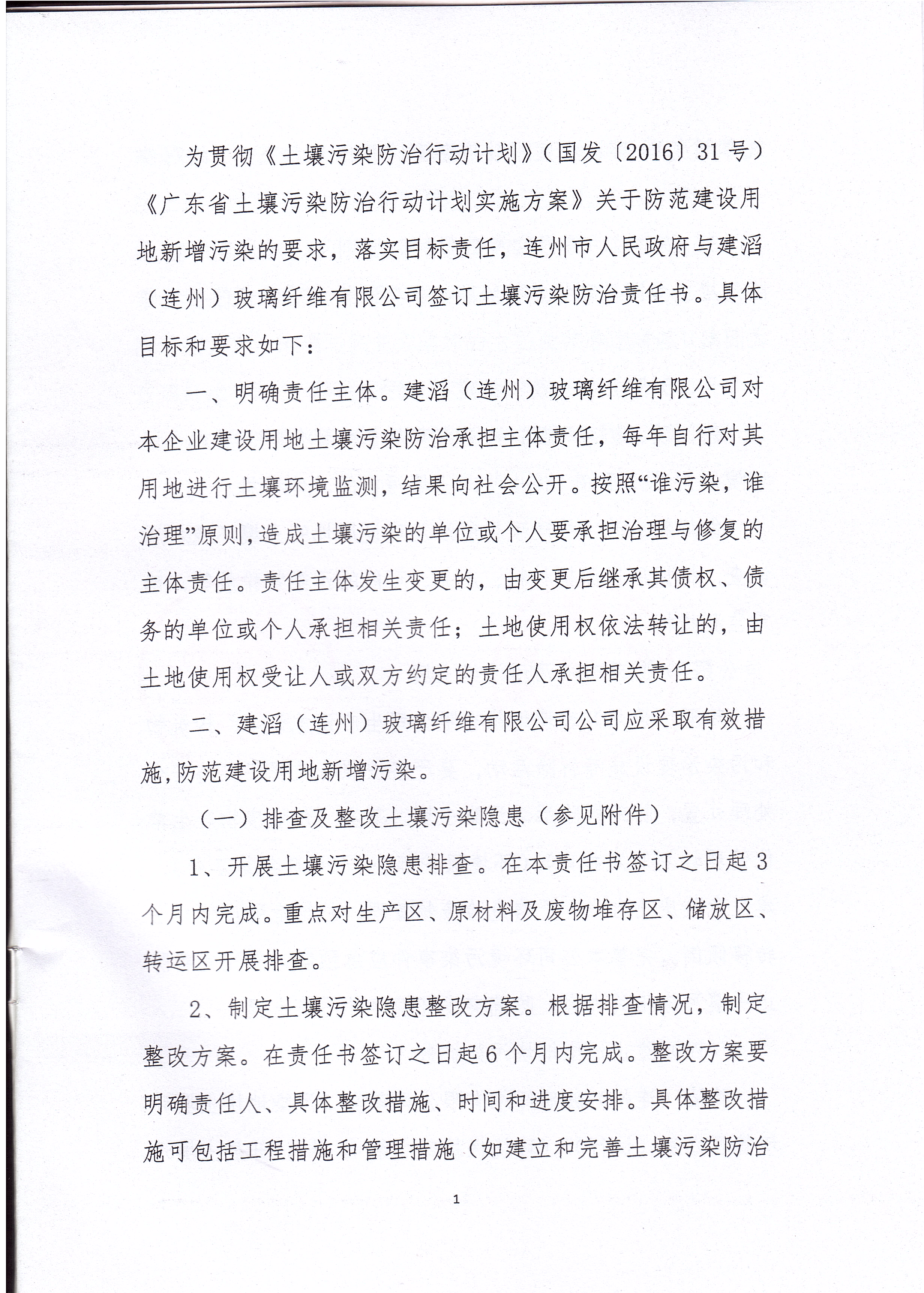 建滔(連州)玻璃纖維有限公司土壤污染防治責(zé)任書