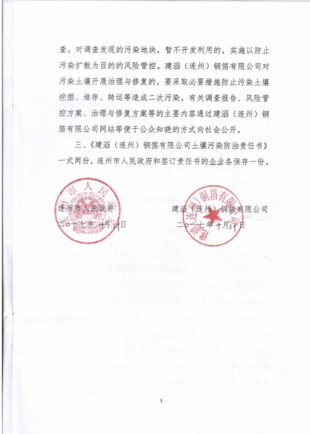 建滔(連州)銅箔有限公司土壤污染防治責(zé)任書