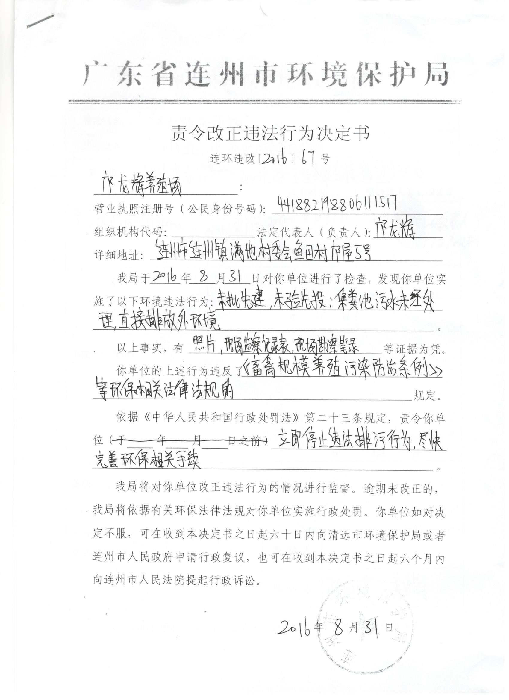 連環(huán)違改字[2016]67號