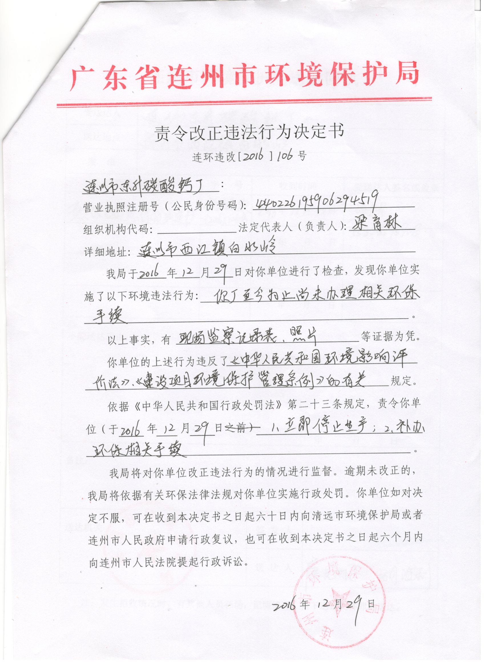 連環(huán)違改字[2016]106號(hào)