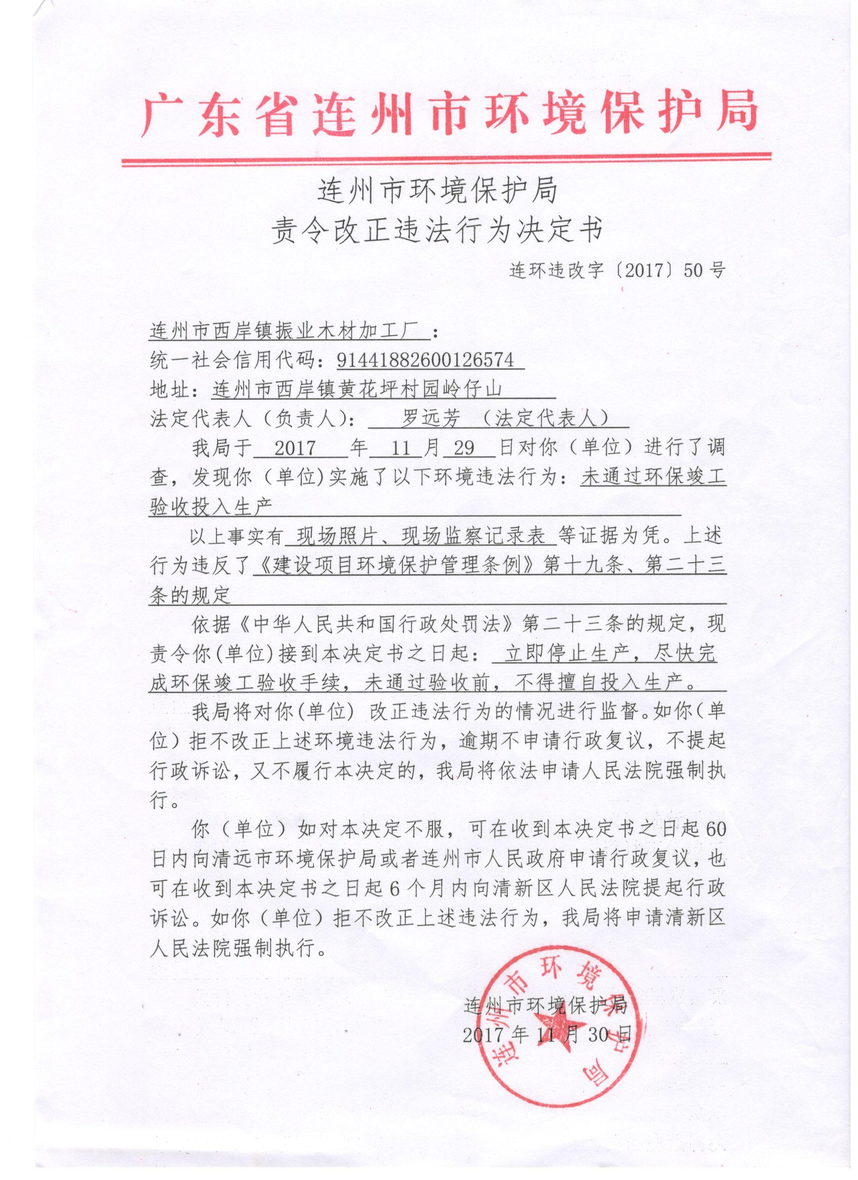 連環(huán)違改字[2017]50號(hào)