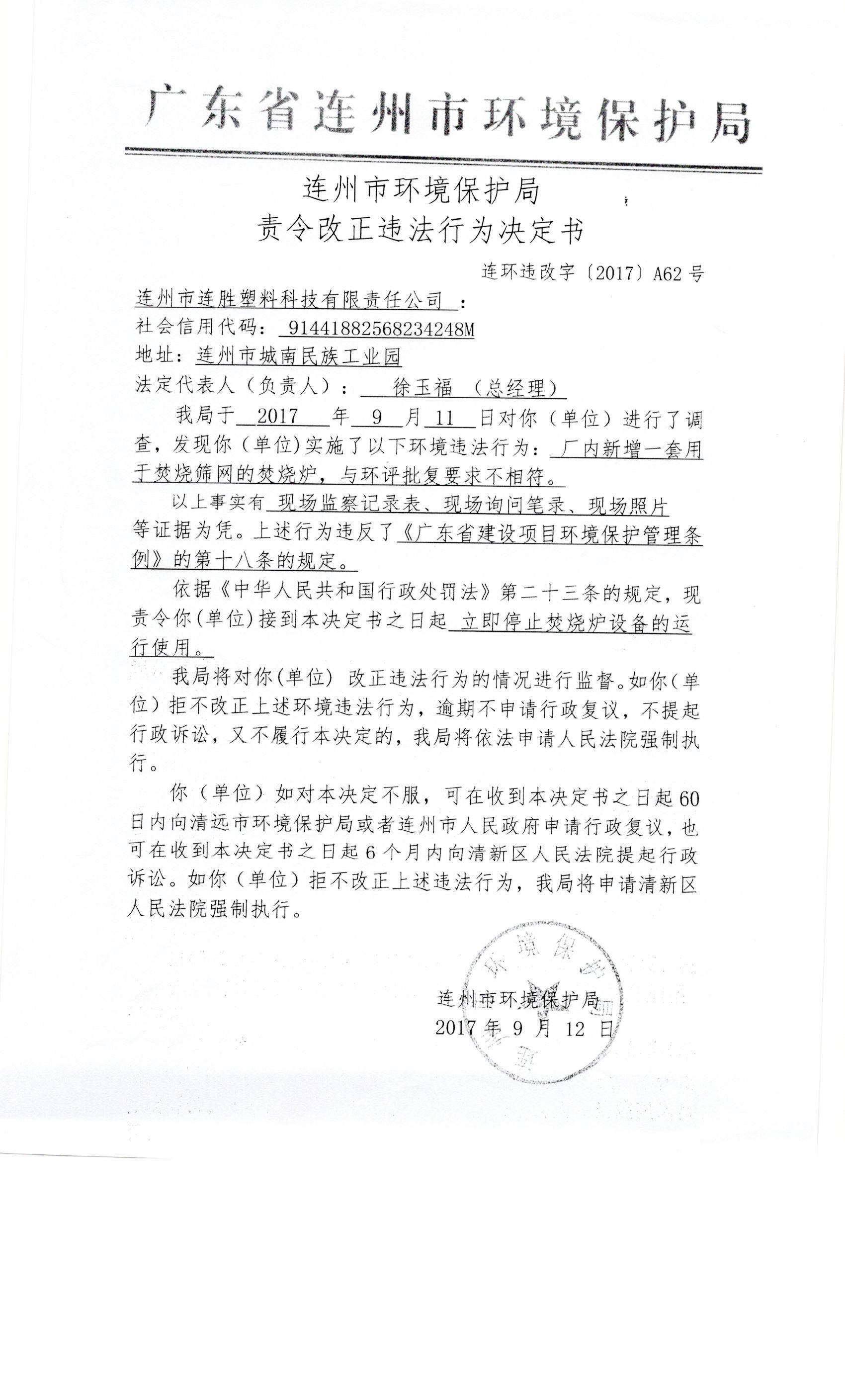 連環(huán)違改字[2017]A62號(hào)
