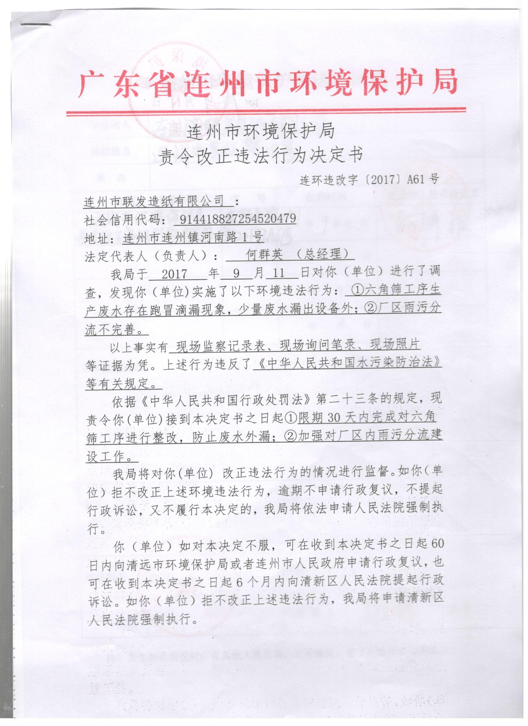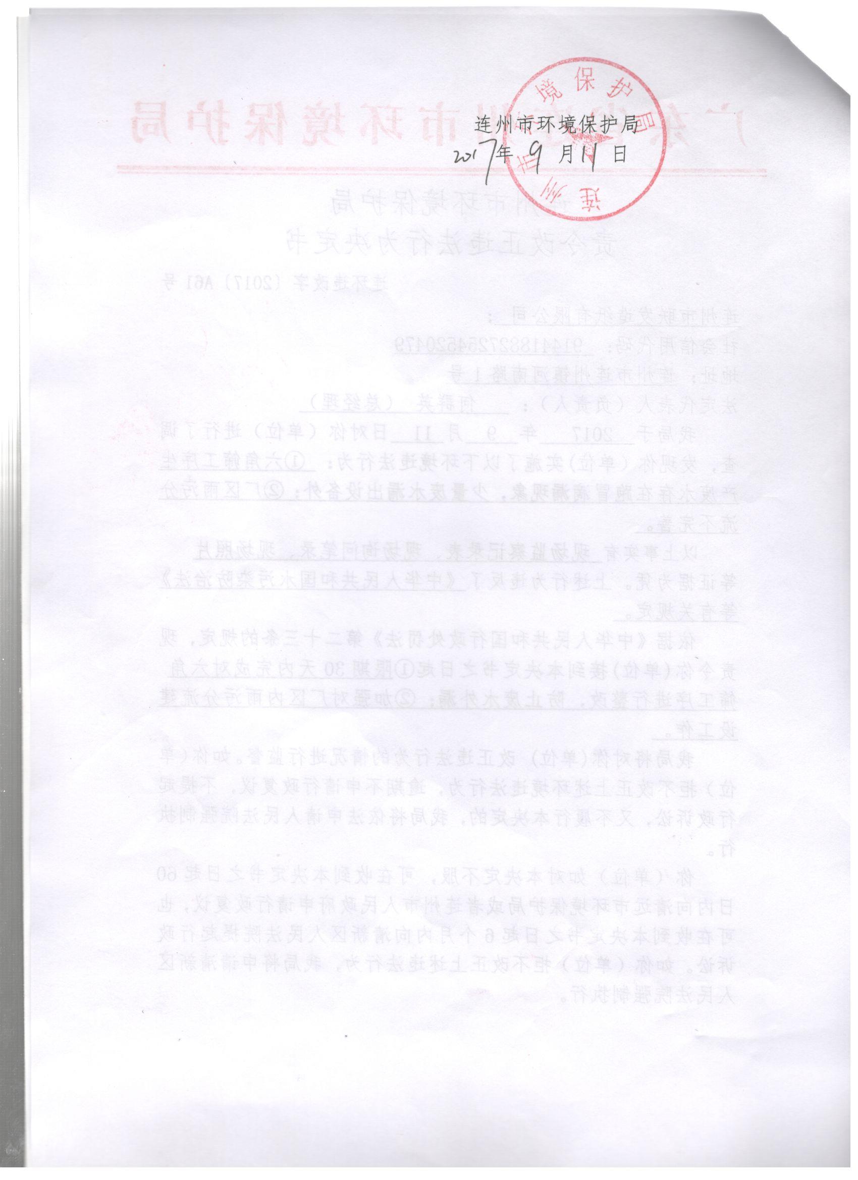 連環(huán)違改字[2017]A61號(hào)