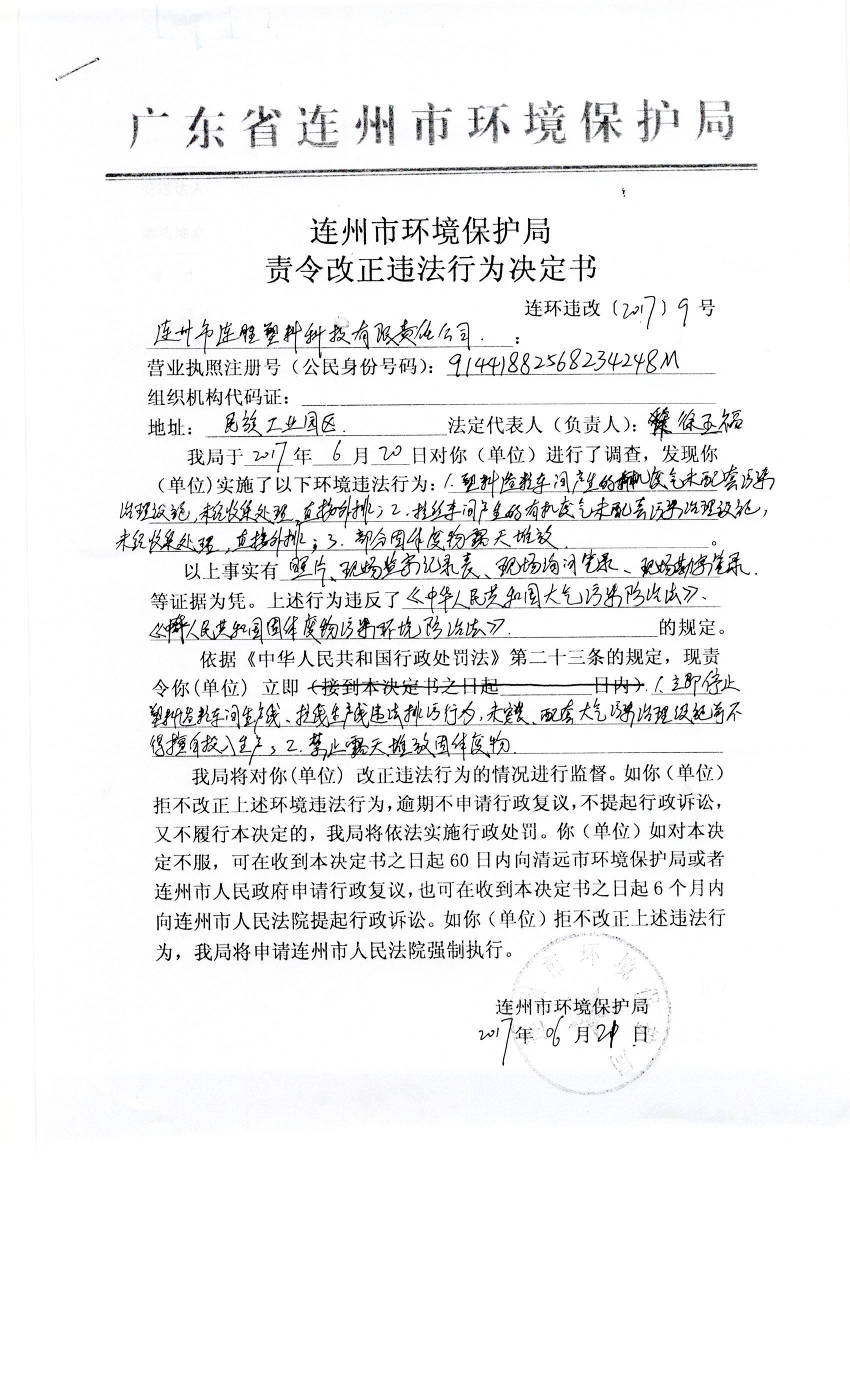 連環(huán)違改字[2017]9號(hào)