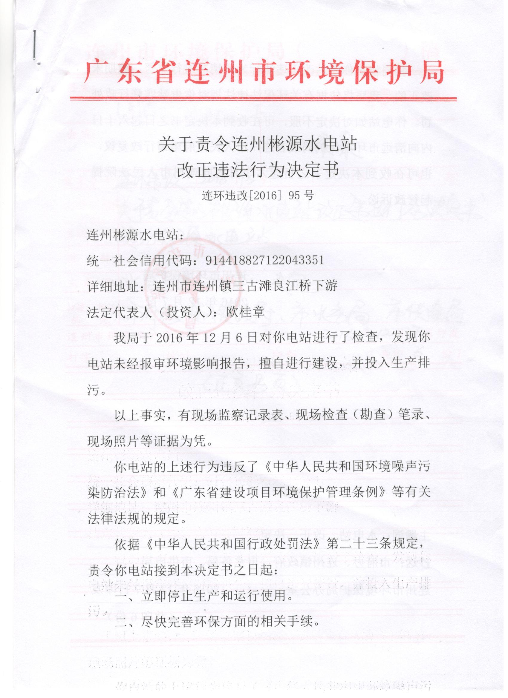 連環(huán)違改字[2016]95號