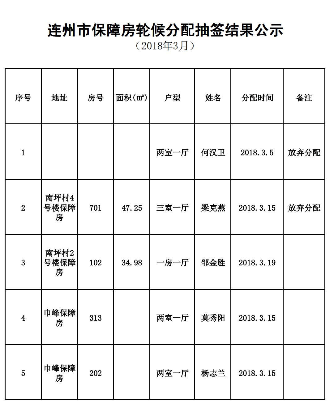 連州市保障房輪候分配抽簽結(jié)果公示(3月)