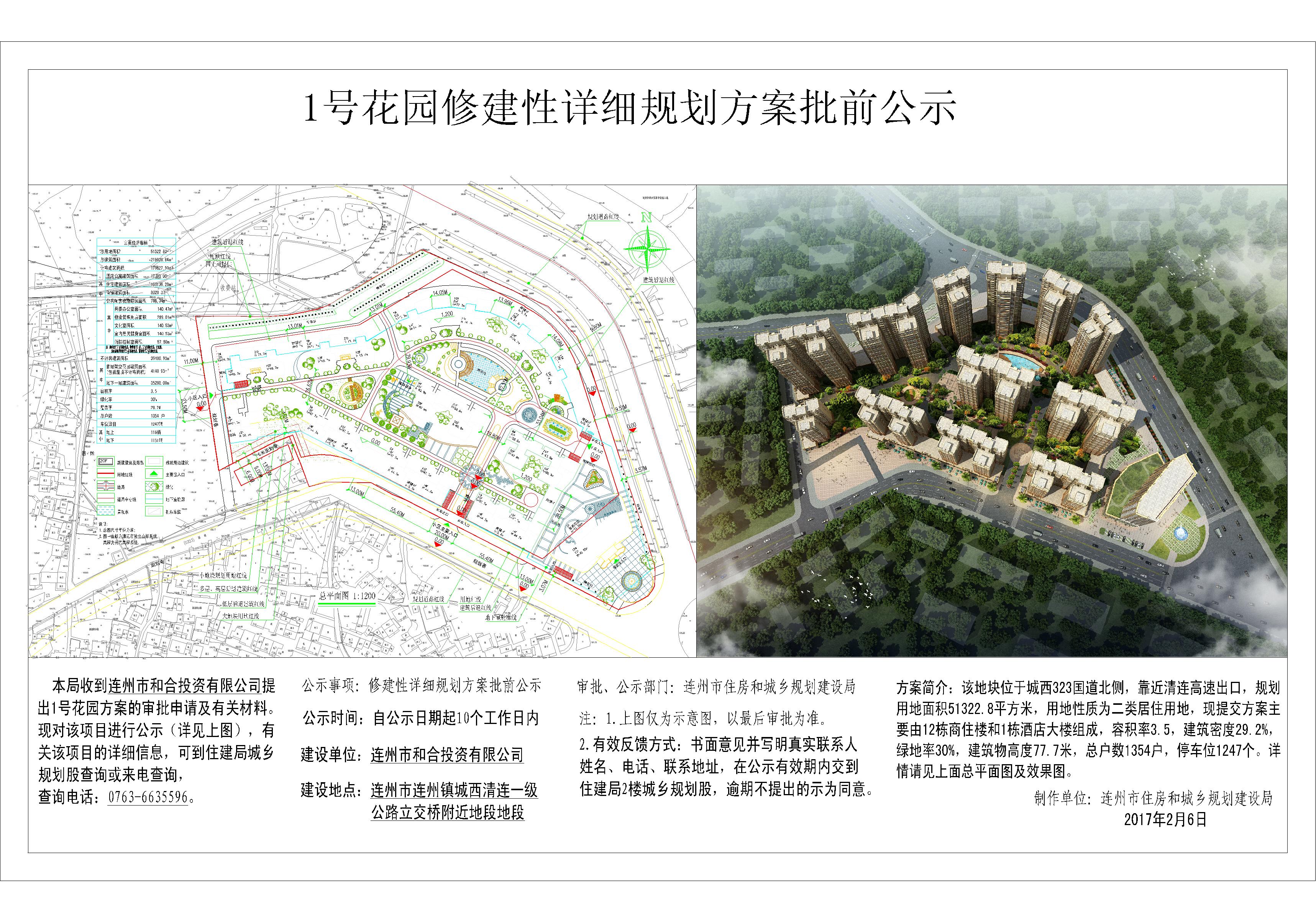 城西元村地塊1號花園修建性詳細(xì)規(guī)劃方案批前公示