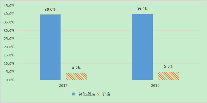 1:2016-2017年連州農村居民食品煙酒和衣著消費支出占比