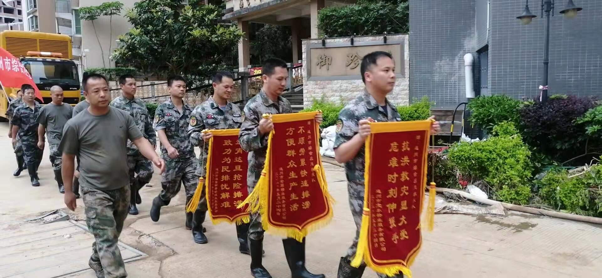 此次搶險(xiǎn),市應(yīng)急管理局組建的市綜合應(yīng)急救援隊(duì)50名隊(duì)伍堅(jiān)守前線,不畏艱險(xiǎn)開展救援工作。受災(zāi)現(xiàn)場隨處可見他們抽水排澇、運(yùn)送沙包、清潔淤泥、為群眾送去生活用水的身影。他們不畏艱辛,通宵達(dá)旦,奮斗到救援的最后一刻,贏得群眾和社會一致稱贊。身為黨員的陳秋理,是連州市綜合應(yīng)急救援隊(duì)隊(duì)長。他連續(xù)24小時(shí)在雨水中、高溫下作業(yè),通宵達(dá)旦,腳底冒起了數(shù)個(gè)血泡,卻依然擋不住他奔跑的動(dòng)力。他身先士卒,帶領(lǐng)隊(duì)員們攬下險(xiǎn)重事、臟累活。“這是我的工作職責(zé)所在。我是一名黨員,只是做了我應(yīng)該做的事。”陳秋理說。24日,救援隊(duì)收到海富御景業(yè)主、安居物業(yè)、海富二期業(yè)主等贈(zèng)送的題為“搶險(xiǎn)救災(zāi)為人民,為難時(shí)刻伸援手”的5面錦旗。連州市綜合應(yīng)急救援隊(duì)奮戰(zhàn)在應(yīng)急搶險(xiǎn)的第一線,用汗水和鮮血書寫關(guān)鍵時(shí)刻“拉得出、沖得上、打得贏”的時(shí)代贊歌。