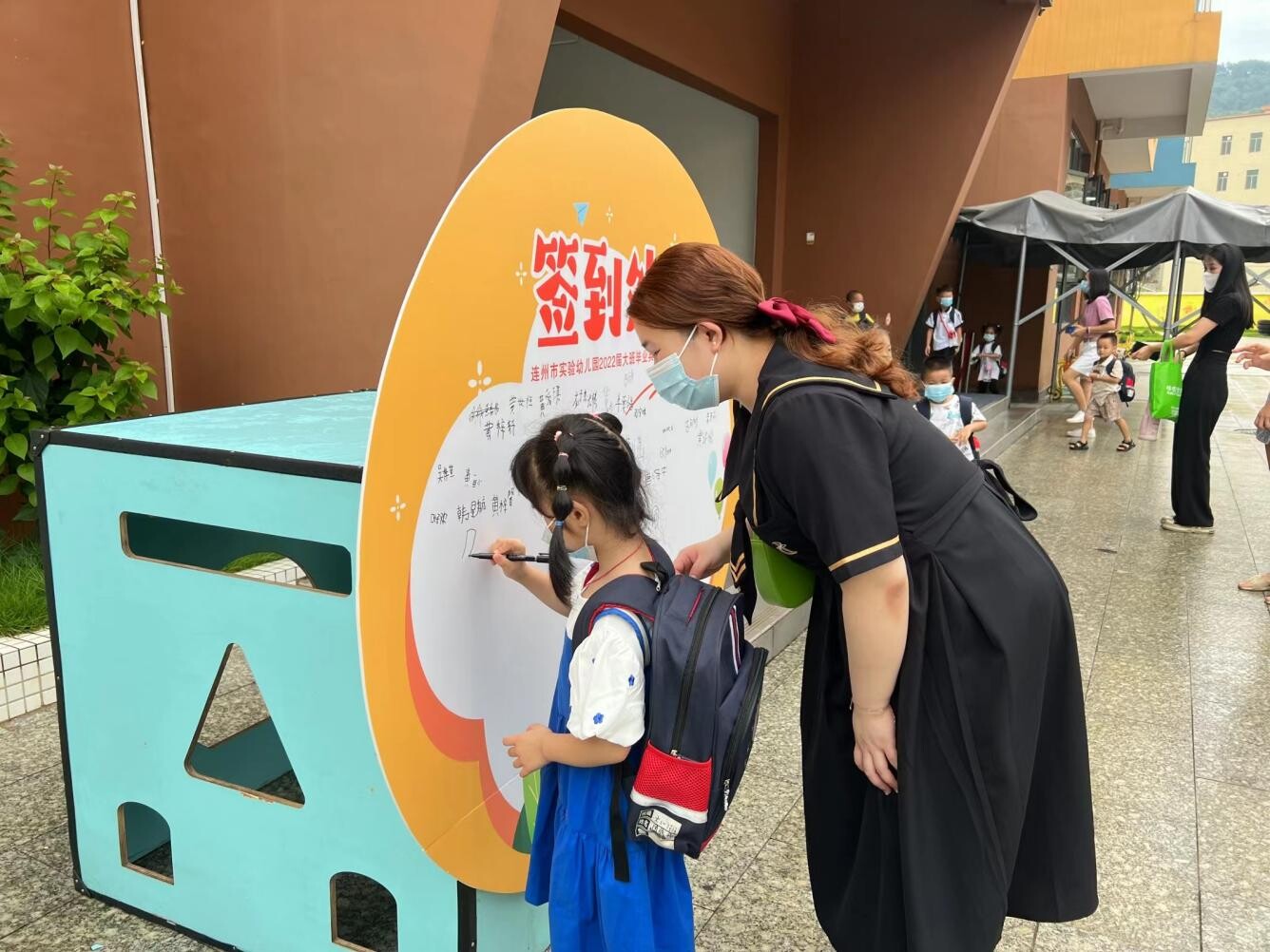 第一個(gè)環(huán)節(jié):成長之門——孩子們?cè)诋厴I(yè)簽名墻上寫下自己的名字,將幼兒園的美好時(shí)光留下特殊的印記,難忘的瞬間。