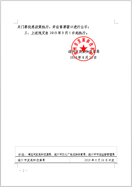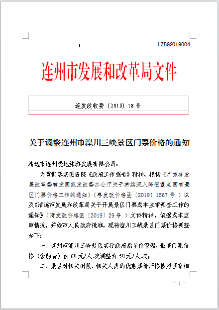 關(guān)于調(diào)整連州市湟川三峽景區(qū)門票價格的通知