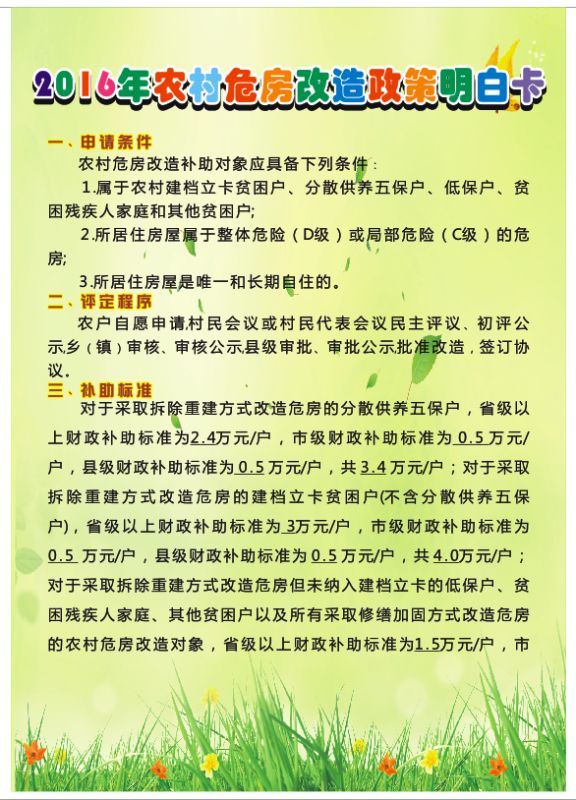 2016年度危房改造政策明白卡